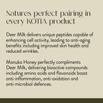 Aqua, Caprylic/Capric Triglyceride, Persea Gratissima (Avocado) Oil, Prunus Amygdalus Dulcis (Sweet Almond) Oil, Glycerin, Dimethicone, Butyrospermum Parkii (Shea) Butter, Polysilicone-11, Squalane, Cera Alba, Cetearyl Olivate, Sorbitan Olivate, Simmondsia Chinensis (Jojoba) Seed Oil, LAC (Deer Milk), Mel (Manuka Honey), Sodium Stearoyl Glutamate, Phenoxyethanol, Parfum, Cetyl Palmitate, Sorbitan Oleate, Sorbitan Palmitate, Xylitylglucoside, Sclerotium Gum, Anhydroxylitol, Tocopheryl Acetate, Xylitol, Ethylhexylglycerin, Xanthan Gum, Hydrolyzed Sodium Hyaluronate, Magnesium Sulfate, Terminalia Ferdinandiana Fruit Extract, Caprylyl Glycol, Acetyl Hexapeptide-8, Benzyl Benzoate, Limonene, Linalool.